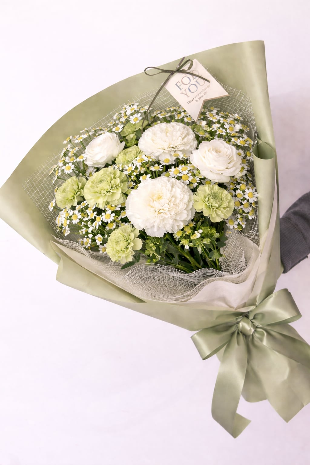 【店頭受取限定】ホワイト&グリーン系|Mother’s Day 花束 ¥5,500
